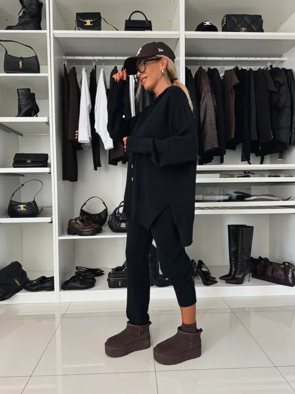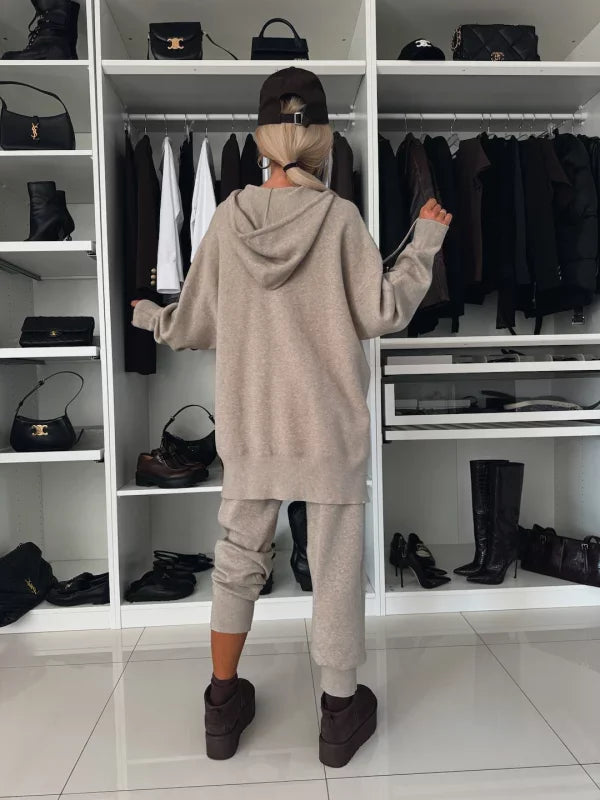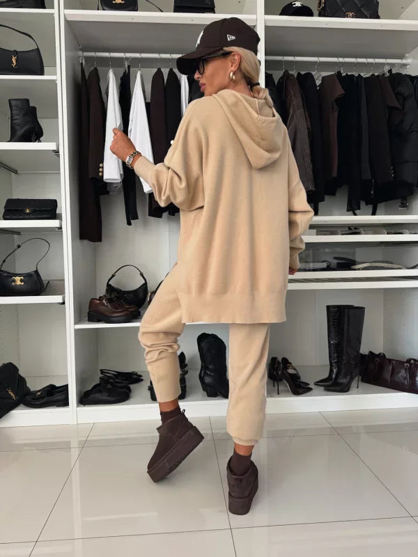 Evana | Dwuczęściowy zestaw damski z długimi rękawami, kapturem i okrągłym dekoltem