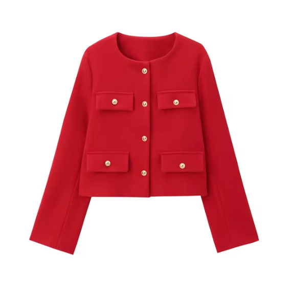 Dopasowany krój subtelnie podkreśla sylwetkę, a delikatne przeszycia i naszywane kieszenie nadają klasycznej formie świeży, współczesny charakter. Idealna na każdą okazję!